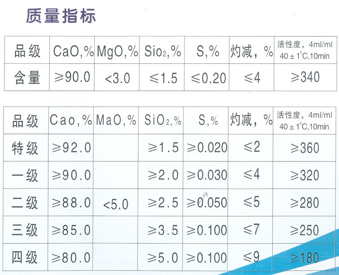 • 产品含钙量高,质量符合各项技指标